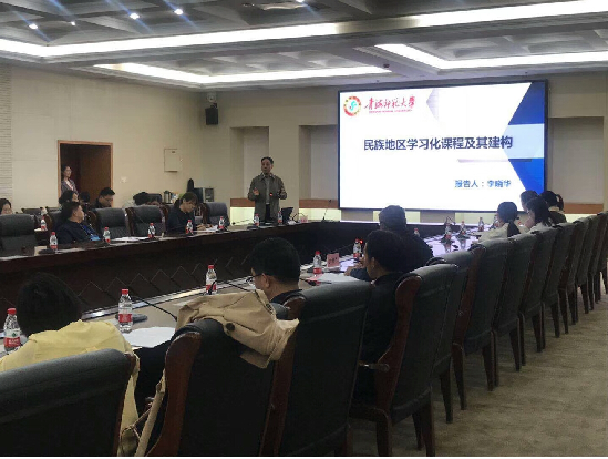 研讨会期间,李晓华教授做了题为《论民族地区学习化课程及其建构》的报告。认为学习化课程与民族文化皆需要保持开放态势,通过不断吸纳与整合实现自身发展,实现二者的融合共生。为此,建构民族经验中心课程、民族员工中心课程与民族活动中心课程是民族地区学习化课程的实现路径。 |