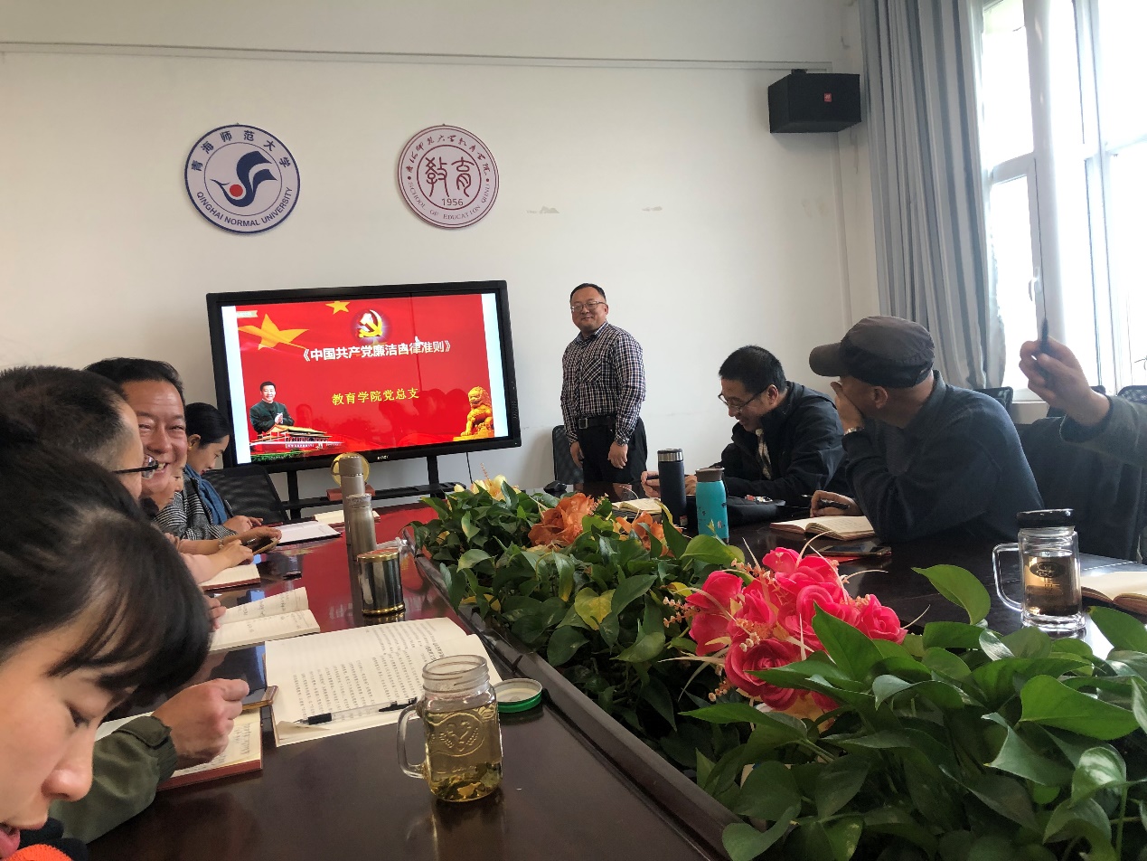 之后,由郭辉同志带领全体党员教师,开展了一次关于学习“廉洁自律准则”的党课。党员干部要廉洁自律,是我们党历来就坚守的铮铮誓言。早在党的七届二中全会上,毛泽东同志就高屋建瓴地提出了全党同志必须做好“两个务必”的论述:“务必使同志们保持谦虚、谨慎、不骄、不躁的作风,务必使同志们保持艰苦朴素的作风”。再次学习廉洁自律准则,对于加强党风廉政建设,促进党员干部的廉洁自律,都具有着十分重要的现实意义。